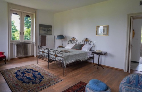 Overlooking Monate Lake with its private beach, Villa Evelina is an old-fashioned house where history meets unforgettable sunsets and the surrounding nature. The park that welcomes it with centuries-old trees and flowering plants makes this villa perfect even in the warmer months, creating different shaded areas where you can relax with family or friends. An enchanting arbor surrounded by wisteria plants is the ideal place to admire the surrounding landscape and the pedal boat nicknamed by the owners "Gigio" will accompany you to discover the lake.