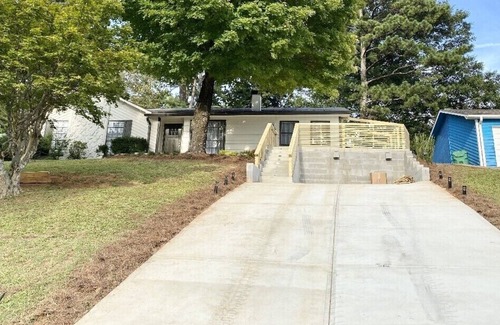 Hidden gem, nicknamed “House on a Hill”. This Mid Century Modern Styled ranch house featuring bright and modern decors with 3 bedrooms, 2 baths, and can accommodate up to 8 people. This unique “House on top of a hill” located in a prime location of Norcross. Suitable for family/big group. Business Travelers are welcomed.