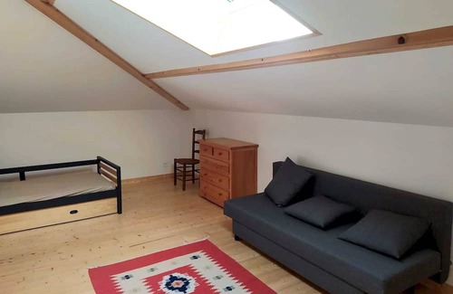 The house has 3 comfortable bedrooms, 1 including 2 single beds and a sofa bed, 1 including a double bed and 1 including 4 bunk beds. Several bathrooms are available, one with a shower and one with a shower and a toilet. A separate toilet is available