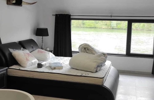 There is a concierge on site in case of problems. The property is 4 meters from the meuse. There is a gym available in the house. There is a boat and a kayak available. There is fishing equipment available. There is a laundry available in the house with a first aid kit. We are 3km from the french border. We are 15 km from dinant.
