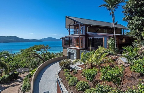 With uninterrupted water views, this impeccably-designed luxury home has a private plunge pool, two buggies and sleeps 12 guests. There are only a few houses on the island with a view this impressive. This home's elevated position means it offers spectacular, wrap-around views of the Whitsundays from every angle, with Catseye Beach to one side, and the Hamilton Island Marina and Yacht Club to the other.