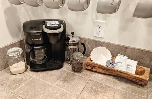 NOW WITH AC. We recently added mini split air conditioning to our home for comfort all year long. Our home features an open layout between the kitchen, dining and living spaces. Step outside our two sliding glass doors onto our large deck complete with Adirondack chairs, a grill, and table. Our kitchen features updated appliances and is fully stocked with all the pots, pans, dishes, and silverware you need. We've got your coffee and tea covered! Brew a whole pot or a single cup in our Keurig K-Duo coffee maker. Or, if you prefer a french press or tea kettle, we have got you covered there as well. The open dining area and living room make for an excellent gathering space, and the dining table comfortably sits 8 people for a big meal after a day out on the slopes.