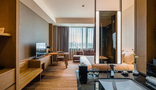 Food & DrinkMinibar, Bottle of waterBathroomTowels, Toilet paper, Toilet, Shower cap, Free toiletries, Bathtub or shower, Shower, Hairdryer, Toothbrush, Slippers, Body soap, Walk-in shower, Bathtub, Conditioner, Shampoo, Bathrobe, Bidet, Private bathroomGeneralIroning facilities, Fire extinguisher, Trash cans, Key access, Key card access, Air conditioning, Smoke Alarm, Carpeted, Safe, IronMedia & TechnologyTV, Flat-screen TV, Telephone, Cable channelsServicesWake-up service/Alarm clock, Wake-up service, Executive lounge accessLiving AreaSitting area, Desk, SofaViewView, City viewBedroomWardrobe or closet, Alarm clock, Childrens' cribsKitchenCoffee machine, Electric kettle, Wine glassesPool and SpaPool towelsRoom AmenitiesAdapter, Yukata, Socket near the bed, Hypoallergenic pillow |