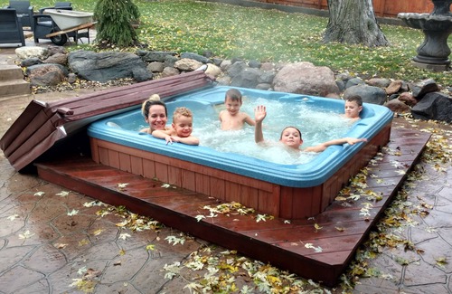Hot tub with stone patio