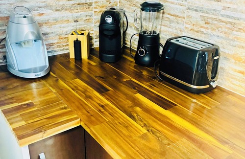 • Modern Kitchen and dining: Fully equipped with cookware, coffee machine, ice crusher, microwave, and everything you need to create home-cooked meals. Enjoy a 6-seater dining table and a breakfast bar perfect for casual meals.