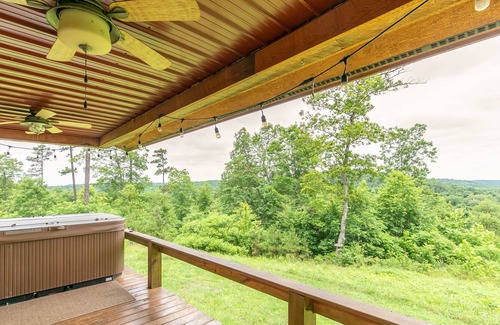 Come check out the beautiful Ozarks!! This newly built cabin sitting in a private serene setting is surrounded by over 81,000 acres of government land that can be hunted and hiked on. You have Current River boat ramp access less than a half mile away! When you get in the the 4 person hot tub with the beautiful view it will be the most relaxed you'll be all year long!! The cabin has everything you need from a fully stocked kitchen, linens and a Dish TV account.