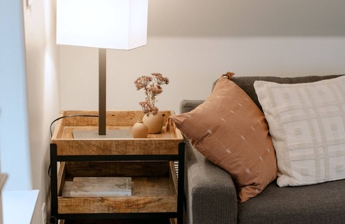 Hygge House PNW is a 830sq ft 3 bedroom/1 bathroom guest house with 2 cozy common spaces, smart TV, electric fireplace, dedicated work space, stocked coffee bar and peaceful country views. The mid century modern decor exudes form and function with thoughtful touches throughout.