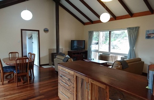 A selection of board and card games, jigsaw puzzles and books await your attention. Whilst a slow combustion wood heater will keep you warm regardless of the temperature outside as you settle in for an evening in front of the flat screen television. All linen aside from beach towels is provided.