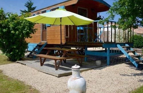 UNUSUAL COTTAGE. Fitted caravan located in a closed property of 1000 m². Small living room with TV (2 convertible fireside chairs for 1 person 90X200), kitchen area (2 electric hotplates, mini-oven, fridge), shower room, wc, 1 bedroom (1 bed 160). Wireless. Terrace, garden table, brazier. Common room available (washing machine, dryer, fridge, freezer). Owner's accommodation, 1 gite, 1 caravan and 1 other rental nearby. Owner's heated swimming pool (5x10m) available from June 15 to September 15. Options: End of stay cleaning: €30/stay; Rental sheets 1 pers. : €10/stay; Sheet rental 2 pers. : €15/stay; Towel rental: €8/pers/stay. Electric heating: general meter reading (deducted from 8 kWh per day for current consumption). Tourist tax. Optional services to be paid on site and to be reserved before your arrival: - End of stay cleaning: 31.91€ per stay - Towels: 8.51€ per person per stay Unless stated, services such as cleaning, bed linen, towels etc. are not included in the price of this rental. If pets are allowed (information in the advertisement), charges may be applicable. Only equipment mentioned in this advertisement are present. Equipment not mentioned are not considered to be present.