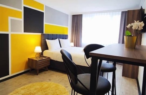 You will feel at home in this studio apartment, every corner of which is designed with the facilities and eye-catching colors of a modern apartment. While relaxing in your double bed, you can watch your favorite Netflix series or movies on the flat-screen plasma TV right in front of you. You will also have a useful and large wardrobe in this area illuminated by the window. When you want to prepare a nice breakfast or dinner, the fully equipped kitchenette and dining table for two will always be close by. And the bathroom is the ideal place to start a wonderful day or relieve the tiredness of the day.