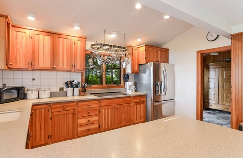 The bright and sunny house is beautifully designed and built by a local craftsman builder, with water views from every room. Attractively decorated and tastefully furnished, it is a great place to relax and unplug. Inside, the clerestory living room is especially spacious and inviting. Outside, the large wraparound porch and comfortable chairs beckon you to sit and forget the clock.