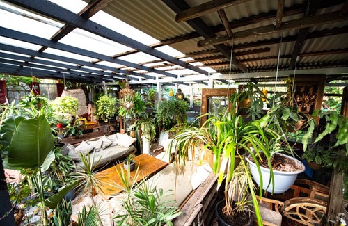 Outside a full furnished cabana with daybeds for reclining with a book, also features a 6 burner BBQ and dining table. This area is shared with all the guests and therefore only for guests of Jaspers Apartments.