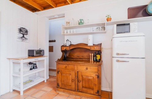 Besides the main house, guests can access the shed/office in the back that includes a work desk, AC and day bed.