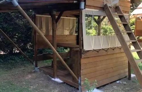 Accommodation: Cabin for 2 persons - 1 bedroom1 bedroom with two single beds 80x190 accessible by a ladder (bivouac style)Covers and pillows providedNo toilets and no sinks. Refrigerator and microwave. Picnic table.Non-contractual photos.