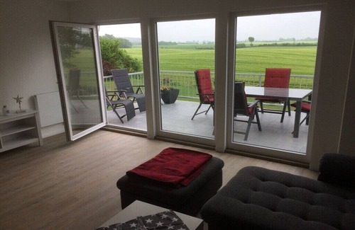 Dear guests, our holiday home is 140m², offers optimal comfort for 4 - 8 people and is equipped with a large balcony and a beautiful sauna area. The new fitted kitchen offers everything you need for a relaxing holiday. A large sofa area invites you to cuddle up and relax. A large garden with an unobstructed view and a double carport await you. From the living room you can look directly into nature. With luck, the deer and rabbits come directly into the garden and chickens and roosters live in the neighborhood. All three TV sets are equipped with Smart TV and connected to the WiFi.