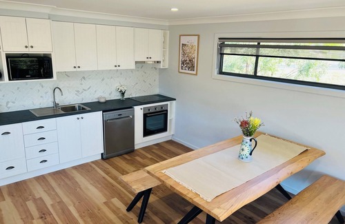 Kangaroo Gully is a two bedroom, two bathroom house nestled in the eucalyptus trees overlooking the beautiful countryside. Enjoy relaxing, reading a book, sitting on the deck enjoying the view or cooking up a storm in the kitchen. You may even be lucky enough to see a kangaroo or some beautiful bird life that call Kangaroo Gully home!