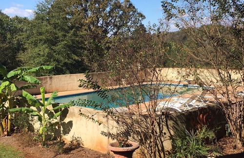A blueberry patch is situated on the back side of the property. There’s also a wood shop and a blacksmith forge close to the house. The swimming pool is open.