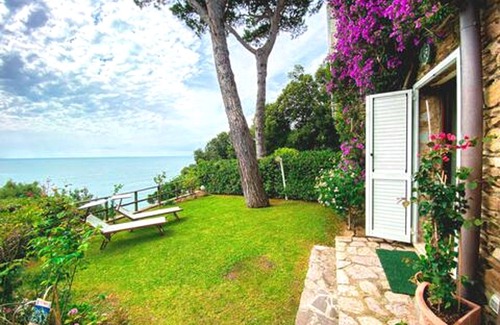 Overlooking the stunning Ligurian Sea with breathtaking views of the Carrara marble quarries, this apartment offers a private garden and exclusive access to the sea via a charming stone staircase surrounded by nature.