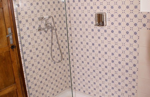 Spacious walk-in shower (80 x 120 cm) with glass wall