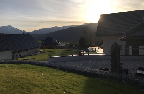 Single-storey single-storey house: living room-kitchen lounge area (1 sofa bed for 2 people), a bedroom (1 double bed), a bathroom (walk-in shower and heated towel rail with a Bluetooth connection), Separate WC. All the shutters are electric with adjustable sun shades in the living room. Gravel terrace. Small lot around the house. Private parking for 2 cars. On the heights of the town of Epersy (Entrelacs), this detached house with a contemporary spirit is next to that of the owner. In the heart of the countryside, its access is quick from the motorway; shops and services are nearby. The living room with large bay windows opens onto the gravel terrace, facing south.