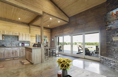 This retreat is a self-contained unit with a full kitchen, living room and a luxurious bedroom with a view of the pond. The rustic and relaxing atmosphere ensures our clients get a break from the hustle and bustle of the city of Austin and yet still be only 25 minutes from downtown. The 300 acre ranch the retreat is part of, has a large variety of mature wild and farmed animals from turkey, white-tailed deer and different types of cattle.