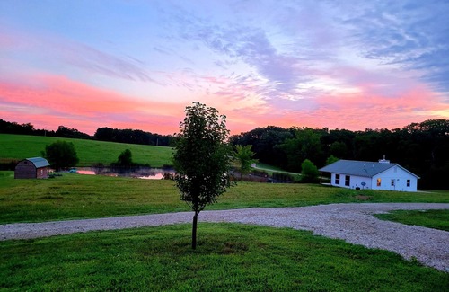 This is a recently built cabin overlooking a lake. You will love spending time on the porch! The cabin is very comfortable and cozy. It's an easy drive to antiquing in Rosebud or visiting the nearby wineries. It's also a nice walk to the Bourbeuse River. Bring your binoculars and fishing pole!