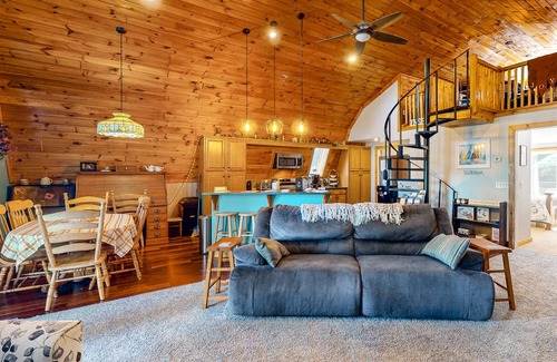 Find your rural New York joy at this beautiful Bradford home right on the lake! Inside the house, you have a quintessential rustic feel with plenty of room for everyone to make themselves comfortable. For some in-home entertainment, play some foosball or have a game night with the provided board games. Fresh air won't be hard to find with the balcony that offers the ideal space for outdoor dining and taking in the beautiful lake views. On a warm afternoon, take a dip in the raised pool out in the yard as other members of your party barbecue on the gas grill or simply soak up the sun on the patio. When the sun sets, gather everyone around the outdoor firepit for some s'mores and reliving the day's escapades. Chilly nights will be well-spent indoors as well with the fully equipped kitchen, open living area with a flatscreen TV, and accommodating dining table for enjoying homecooked meals. Get away from it all and make the best memories today!