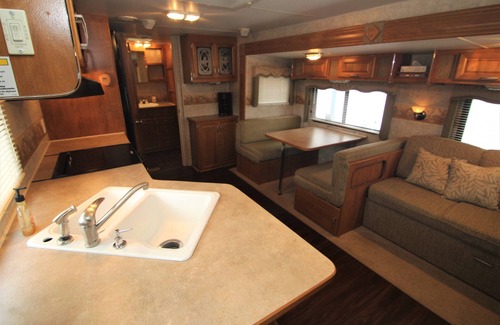 Enjoy this amazing lakeside (just steps away from Lake LeBoeuf) 1 Bedroom, 1 Bathroom with extra large living/kitchen area stationary RV for your next getaway. The Barefoot Bungalow RV is located at the Lake LeBoeuf Lodge which includes pavilion, shower-house, fire-pit as common use areas for guests.