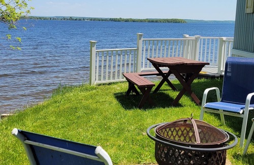 Fully furnished just 13 miles from the Salmon Run Mall. Sleeps 4; 2 bedrooms each with a full-size bed. Location and 4 floor-to-ceiling windows facing the open lake make you feel like you are floating as you experience Lake Ontario’s extraordinary natural beauty in your living room and kitchen. (You actually feel like you are right on the shore). The main deck features a Weber spirit grill and there is a small reading deck to relax and enjoy your morning coffee. Recently we added a deck facing the lake, very relaxing. Other amenities include a quiet, kid friendly cul-de-sac; cable TV; Wi-Fi, and a well-equipped kitchen with a microwave, full size gas stove and refrigerator. Best of all it is affordable; cheaper than most motels in the area.