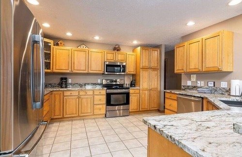 This Bass Lake home is perfectly nestled on 188 feet of lakefront and 55 feet of private, beautiful sandy beach where you can spend time making memories with friends and family while watching incredible sunsets from the west-facing shore. We also include the use of 3 of our Kayaks April to October. With 6 bedrooms and 4 bathrooms, 2 full size refrigerators this home can accommodate large families.