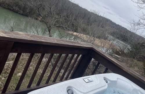 Check out the hot tub and views at my beautiful Current River getaway just outside of Doniphan!! You will be impressed with all the amenities this home offers from the large deck, stairs to the river, and beautiful new furniture inside this spacious home. The outside features patio furniture and a BBQ grill that is perfect for the weekend getaway or family reunion. The home has 4 bedrooms (plus sectional and king air mattress in closet) and 3 full baths and sleeps 15 people.