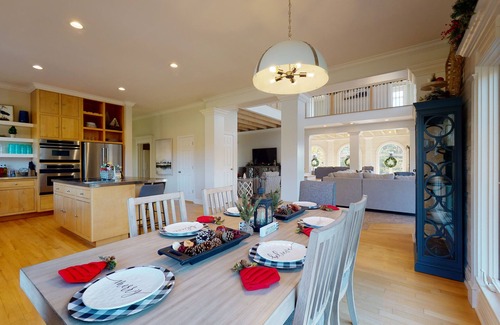 The open concept main level of the house features: One full bath, with washer/dryer. Three seating areas. Two dining areas provides seating for twelve (12). A fully stocked kitchen includes basic seasonings and kitchen supplies such as a crock pot, toaster, coffee maker and coffee.