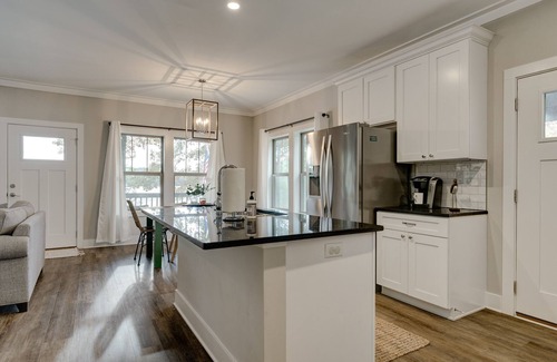 Built in 2020, this lake cabin is perfect for relaxing off the beaten path. Three bedroom, two bath with semi-open living and dining area is great for hanging out. Lots of great natural light to let the lake views in! Large front porch and stone patio invite you to just be outside and soak it all in! Or you can go to the main boathouse and spend the day getting some sun, fishing, or swimming. Separate pier on the other side of the point is also excellent for a fish or swim. Water is 8' deep off the end of the docks, perfect for swimming. Home has DISH TV for rainy days. Just 10 minutes from Pursell Farms, it's perfect for golfers or wedding guests who wants to be close by but have a private house on the water all to themselves. Book today!