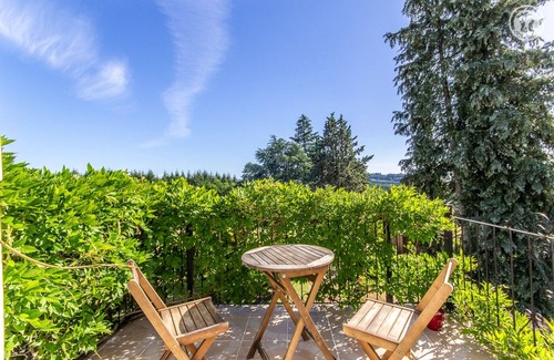 Comfortable and charming residence, nestled in the countryside, in a pleasant natural and rural setting preserved by meadows & vast forests, in the heart of a quiet residential hamlet. Vast, very well-kept landscaped park of 7,000 m², grassy, planted with plants and flowers, with a literally exceptional level of leisure facilities: beautiful heated swimming pool (5x10m / available only from the beginning of May to the end of September, which can be shared occasionally with the owners) with large terrace & ultra-equipped pool house (complete summer kitchen, numerous board games, stereo, billiards, table football, piano exclusively reserved for music lovers, darts, "nap corner" with single bed), tennis lessons, ping-pong table, large gravel courtyard (natural pétanque court!) & several fun relaxation areas (swings, vegetable garden, etc.). Spacious, comfortable gîte. Soft & cozy atmosphere. Pleasant covered terrace accessible from the kitchen supplemented by a balcony terrace upstairs accessible from the living room, with breathtaking views of the park. Superb landscapes and panorama. Private parking at the bottom of the property. Composition: Detached house adjoining the owners' house (total independence). Wireless. Electric heating + stove (wood provided). Ground floor: kitchen. 1st floor: living room (double convertible sofa 140x190cm), 2 bedrooms (double bed 160x200cm / 2 single beds 90x190cm), bathroom (shower/WC). Covered terrace + balcony-terrace + private parking. Large landscaped park-type garden (7500m²) shared with tennis court + heated swimming pool (5x10m) + ping-pong table + swing + "natural" pétanque court on the courtyard. Furnished pool house of 48m2 (complete summer kitchen / billiards / table football / piano - stereo). WC with hand basin in the courtyard. 2 adult bikes available for loan. Shops & services 10 km. Extra bed: €45/person/night.
