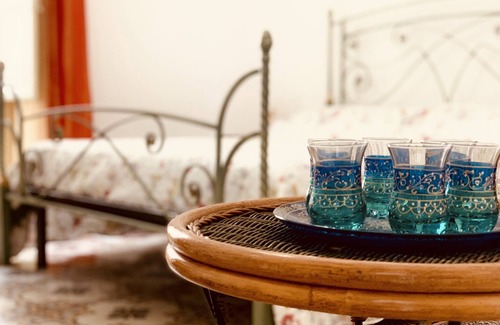 This is an elegant apartment situated in a period building only a few metres from Piazza Politeama, in the centre of Palermo. The flat has recently been refurbished, making it more comfortable, especially thanks to the double glazed windows. The principal bedroom, with the antique tiled floor and the vaulted ceiling, is very large and well lit, and has a balcony overlooking the street that leads to the Politeama. The second bedroom is furnished with a bookcase in the corner, a queen size bed and a wardrobe. On the adjacent terrace there is a veranda with a big wash basin with a washing machine. However, the most pleasing features in this terrace are two tiled wall seats whose traditional motives can also be found in the kitchen and bathroom, plus some plants and ceramic pots and decorations made by a local artist. In the modern bathroom there is a shower and also a bidet. The completely refurbished kitchen is next to the sitting room, where there is a comfortable bed, an armchair and a dining table with six chairs. This room has also an ancient tiled floor and a vaulted ceiling. The living room leads onto a small terrace, where guests can have their breakfast alfresco. In the apartment there are two air conditioning machines that keep the place cool in Summer and warm in the Winter days.
