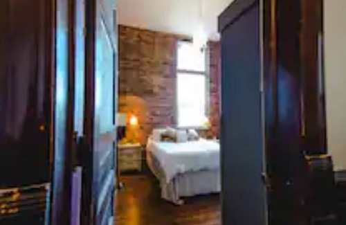Beautiful exposed brick walls, antique decor, comfy beds, chandeliers, and massive windows throughout.