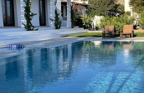 The modern guest house is fully equipped with everything needed to enjoy a comfortable and luxurious stay. Enjoy a cooling down in the amazing swimming pool, the terrace with panoramic sea and garden views with lemon and olive trees. All this invites you to unwind and enjoy the beauty of the island in a peaceful, stylish space.
