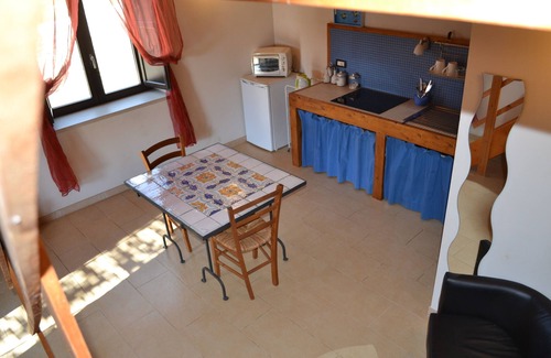 This Apartment is about 40 square meters with independent entrance, one double bed on the mezzanine, one bathroom with shower, living room with kitchenette and outside area. This apartment is ideal for 1 couple with 1 child (extra bed available for an extra fee).