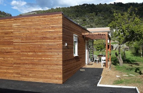 Cottage for 4 people - Surface area 50 m². - Entrance to living room, open kitchen. - 1 bedroom (1 double bed 140x190). - 1 bedroom (2 single beds 90x190). - Shower room, separate toilet. Private terrace, parking. Charges included. Tourist tax extra. Independent wooden construction house with very low energy consumption (A+). 1000 m² of land with fruit trees and aromatic plants are shared with a 2nd identical gîte (n°6312) located nearby. Ideal for bringing 2 families together on vacation. The owner is keen to respect an eco-friendly approach. Rainwater is also collected for watering. Gîte located 5 minutes by car and 1/4 hour walk from the village. Municipal swimming pool, tennis, horse riding club nearby. Levens is a village overlooking the Var valley, close to Nice and the Côte d'Azur. Quick connections with the Alps road and the valleys of the Alpes-Maritimes, mountain leisure activities in summer and winter sports in resorts.