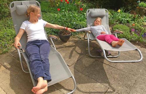 The apartment on the ground floor we have "garden view" baptized. From the huge south-facing windows of this apartment you look into the lush green garden but also on the huge mountain massif of the Kampenwand. The apartment "Gartenblick" offers 111 square meters (plus about 30 square meters sun terrace) plenty of space for couples but also for families with 2 - 3 children. On the Sonnenterrasse, you can use our comfortable Echtholz-Gartenmöbel, our deckchairs, the Weber-Grill and the fire-place for romantic evenings in the open. We even used our terrace at the first sunbeam at every meal. The terrace can only be used by guests of the apartment "garden view"!