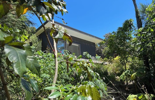Kick back and relax in this calm, stylish space in the heart of a food forest. Bananas, blueberries, figs, pomegranates and a cornucopia of other organic edibles may just be ready for you to sample off the tree, and 2km down the road there is the most beautiful white sand beach where you can swim, spearfish, snorkel or just relax. Situated close to Parua Bay village and Whangarei Heads offering heaps to do, or if you prefer to just chill in the cabin, you have complete privacy for that.