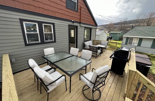 Get cozy in this 4-bedroom, 2-bathroom newly renovated lake-front home in Homer, NY! Spacious patio that leads to hot tub or level lake-frontage - whatever your seasonal pleasure. Enjoy fishing off the dock, swimming, or kayaking (2 provided) in the warmer months. Or hit the slopes at nearby Song Mountain, Greek Peak, and Labrador Mountain in the snowier months!