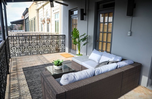Enjoy this beautiful, fully-renovated and refurbished 1800 square foot apartment in the heart of New Iberia's burgeoning Historic District, within the aged brick and mortar shell of what was once a Civil War military bunk house.