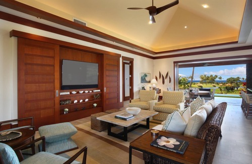 The four bedroom villas at The Lodge at Kukui’ula on Kaua’i offer luxurious accommodations and exclusive access to the award winning private club facilities and amenities of The Club at Kukui’ula, including the 18-hole Tom Weiskopf designed golf course, sprawling spa and wellness complex, 10-acre organic farm, club house facilities, two restaurants and a complex of saline pools.