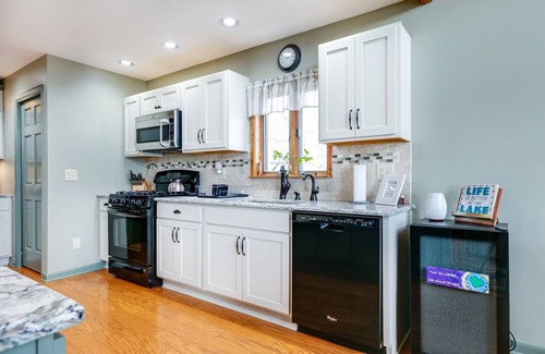 Linens and towels are included, and parking is available for 4 cars. Experience a contactless check in for your convenience. For added security, there’s an outdoor security camera with audio on the Carriage House monitoring the Carriage Home driveway and entry way of the Main House. Your lakeside escape awaits!