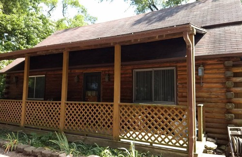 Our Driftwood Lodge has 3 bedrooms with a loft sleeping area and 2 bathrooms. Two bedrooms are downstairs with one bedroom and the sleeping loft are upstairs. You can sleep 16 people total or 10 in separate beds. There is a full bathroom on each level. We also have a pull out sofa if needed.