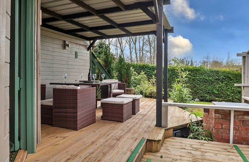 Welcome to Garden Lodge, your ultimate couple's getaway in the heart of Shropshire! Nestled within the serene grounds of the owners' home, this charming lodge combines modern comfort with a touch of rustic warmth. Upon entering, you're greeted by an inviting open-plan kitchen and living area, adorned with cozy wood-panelled walls and a grand fireplace, perfect for romantic evenings. The fully equipped kitchen ensures you can prepare delightful meals while enjoying quality time together, and a convenient utility room adds to the lodge's practicality. Step outside onto the spacious wooden decking, where your private hot tub awaits, surrounded by lush greenery. Imagine soaking under the stars, with the soothing sound of a nearby waterfall enhancing the tranquil atmosphere. The decking also provides an ideal spot for al fresco dining, whether you’re grilling on the BBQ or enjoying morning coffee as the sun rises. Every detail of Garden Lodge has been thoughtfully crafted to elevate your experience, making it a sanctuary for relaxation and romance. Located just 1.4 miles from Craven Arms and 7 miles from Church Stretton, this lodge is perfectly situated for exploring the breathtaking Shropshire countryside. Discover quaint local shops, charming cafes, and historical landmarks such as Stokesay Castle and the Shropshire Hills Discovery Centre. With private off-road parking and an EV charger for electric vehicles, Garden Lodge is ready to be your chic retreat, where you can reconnect, recharge, and create lasting memories together.
