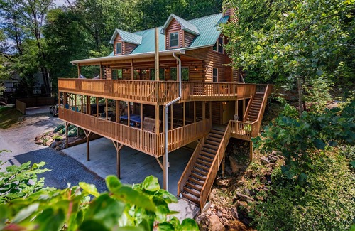 Log cabin with large decks on the Bank of the Tuckasegee River is located in Sylva. Log cabin with large decks on the Bank of the Tuckasegee River provides accommodation, featuring TV, Sports/Activities, Fireplace/Heating, among other amenities. This Cabin features TV, Sports/Activities, Fireplace/Heating, to make your stay a comfortable one.