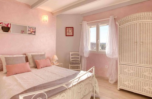 This very beautiful, inviting vacation home with private pool welcomes you to Provence. Unwind in the bright rooms, which offer the ideal setting for your vacation relaxation with their friendly colors and homely furnishings with romantic elements. After a wonderful day of vacation, make yourself comfortable on the sofa and watch a movie together.