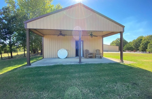 This is a tiny barndominium. We call it the "Love Shack" because we often rent it to newly weds or members of the wedding party from the local wedding venues. It has all the amenities you would need, granite counter tops, full living room, kitchen, laundry room & it’s tall ceilings give it an airy spacious feel. It is a peaceful sanctuary with lots of privacy but close to 2 of the largest cities in N.E. Arkansas. This is truly a little slice of Harmony placed on a beautiful rolling property. No Hunting Allowed.